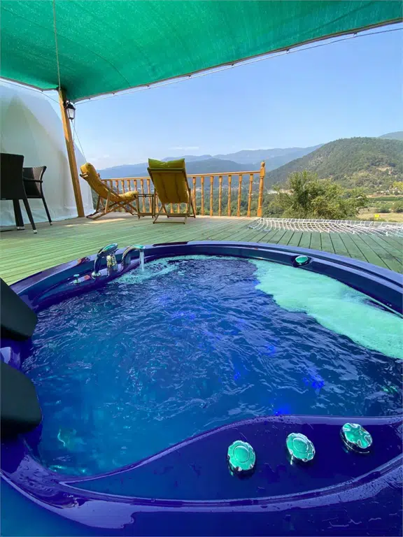 Güçlü klima ve seramik ısıtıcıların kullanıldığı kubbelerde dört mevsim konaklamak mümkündür. Her kubbede veranda mevcut olup verandalarda sıcak sulu jakuzi, hamak ve şezlonglar standarttır. Veranda izole edilmiş olup her şeyi ile tamamen size özeldir.